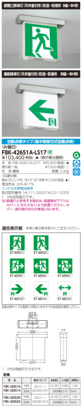 toshiba 東芝 FBK-42651A-LS17 防災用照明器具 LED誘導灯 誘導灯部品